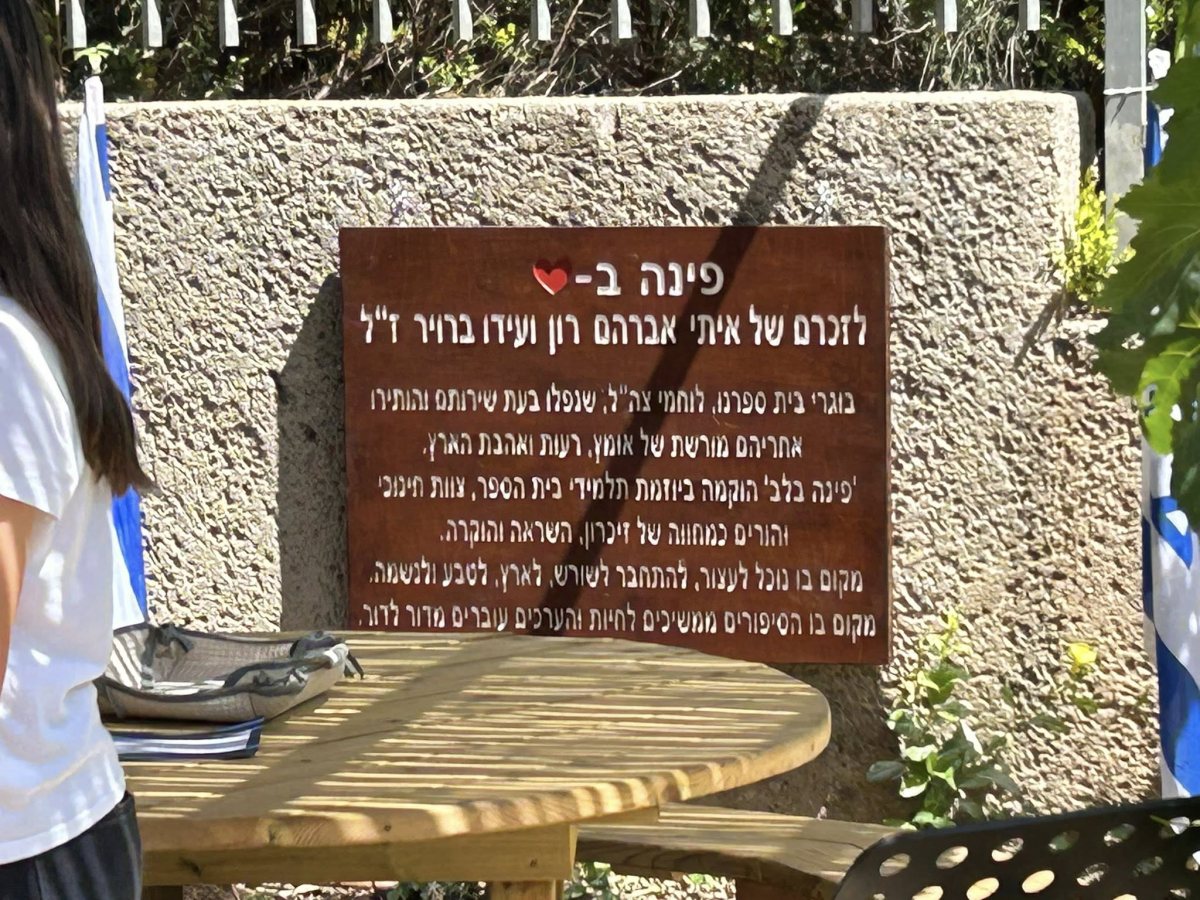 ' פינה בלב' הוקמה ביוזמת תלמידי בית הספר, צוות חינוכי והורים כמחווה של זיכרון השראה והוקרה.