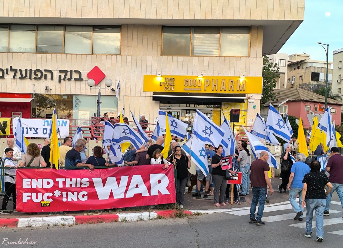 ערן ליטמן, אביה של אוריה ז"ל שנרצחה ב-7 באוקטובר ליד קיבוץ מפלסים, היה אחד משלושת הדוברים במחאת נס ציונה בצומת הראשית בעיר, מול הקניותר.