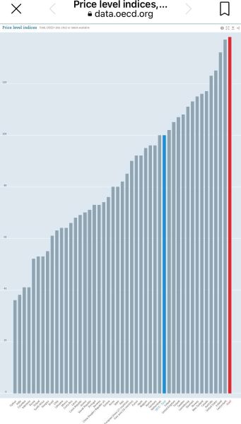 מדינת ישראל היא המקום היקר ביותר מכל 44 המדינות החברות ב-OECD והמועמדות להצטרפות. כן שמעתם נכון, יוקר המחייה בישראל גבוה משווייץ, מארה״ב, מאנגליה, מצרפת, מיפן ומכל שאר מדינות ה-OECD.
