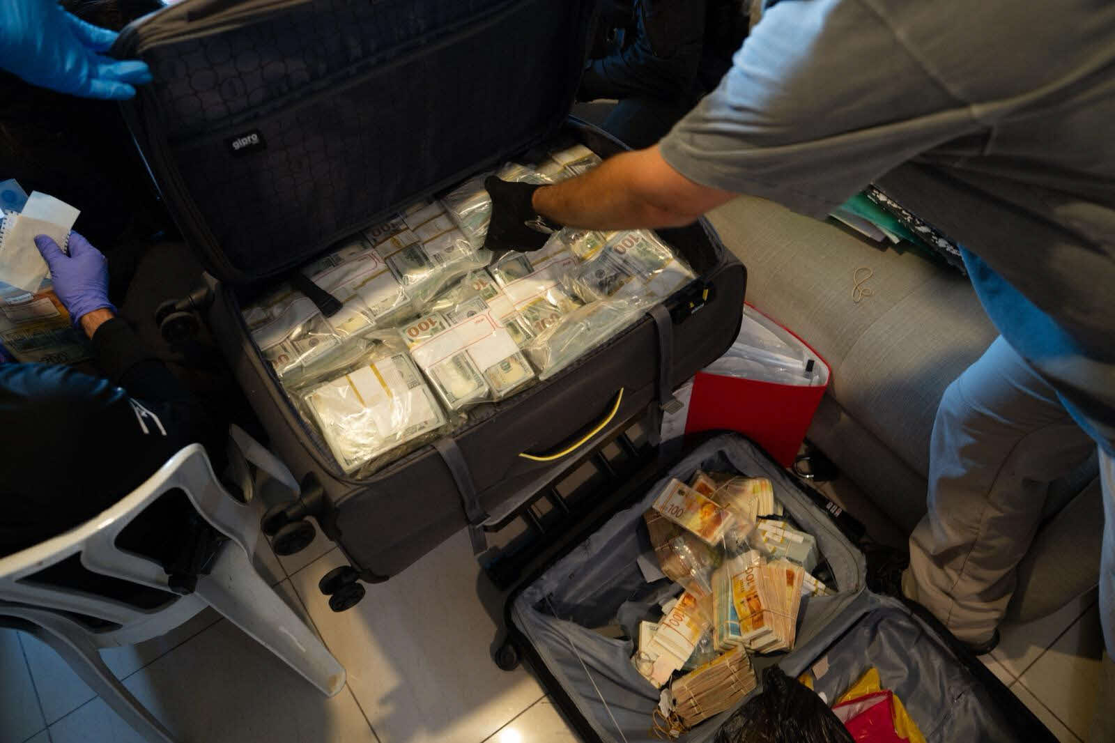 מזוודות כסף וכמויות סמים: צפו בפשיטה הדרמטית על הכנופיה (וידאו)